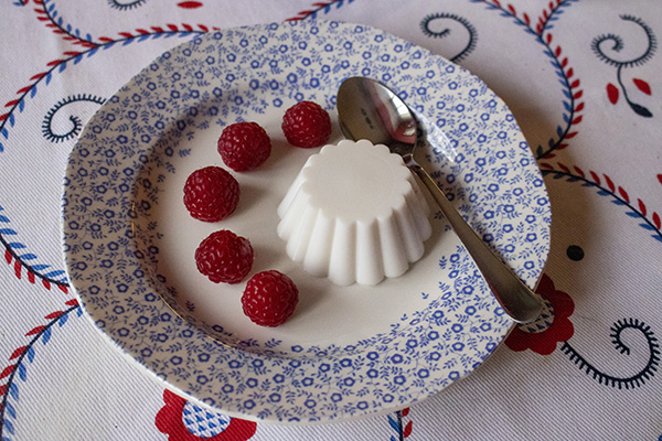 Около месец по-късно, със същия човек минахме покрай друга сладкарнница от същата верига и влязохме да проверим за панакота – нямаше. Обаче мухата на тази идея вече упорито жужеше в главата ми и нямаше отърваване. Затова, след като се прибрах, потърсих рецепта и попаднах на тази http://www.passionandcooking.com/2018/07/05/panna-cotta/. Прочетох я и установих, че имам агар агар. И тогава ми дойде друга идея – нали избягвам млечните, защо да не пробвам с кокосова сметана. Изтичах (буквално) до близкия супермаркет и намерих еднолитрова разфасовка в картонена кутия. Взех и малини. И около два часа по-късно слушах възторжени отзиви.
