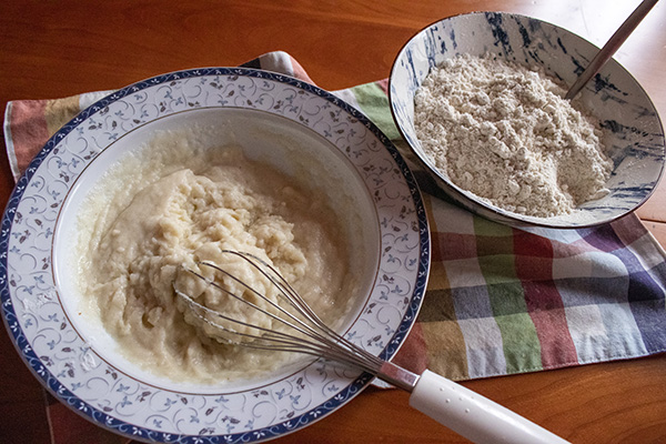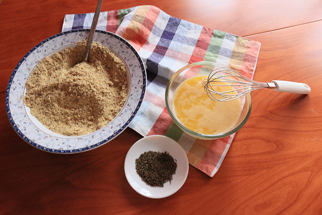 Сухите съставки (с излключение на кима) се смесват добре в по-голяма купа. Яйцата се разбиват и се добавят зехтинът и водата. Получената смес се добавя към сухите съставки и се разбърква до пълно усвояване. Добавят се семената ким с разбъркване и се оставя за 5 – 10 минути.