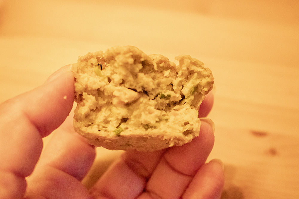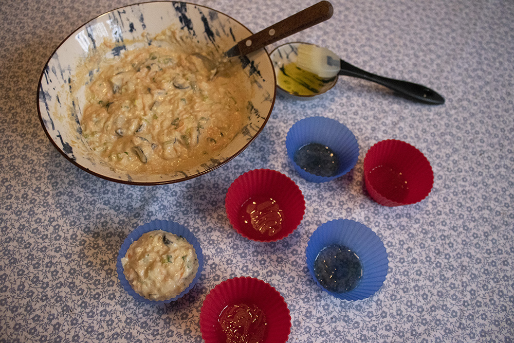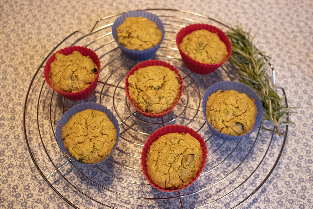 След сладостите по Великден, просто нямаше как да не направя нещо солено. От известно време мислех за солен кекс, даже пробвах един, но не ме впечатли. Сега попаднах на тази рецепта за мъфини и реших да опитам. Първо – без яйца (със смляно ленено семе), но не се получи. Станаха глетави и влажни. Затова следващият опит беше с яйце и резултатът си заслужаваше. Станаха много приятни и ароматни. Аз не съм слагала сирене, но в оригиналната рецепта има и при желание може да се добави. Освен това може да пробвате с други зеленчуци – например ситно нарязани броколи или карфиол.