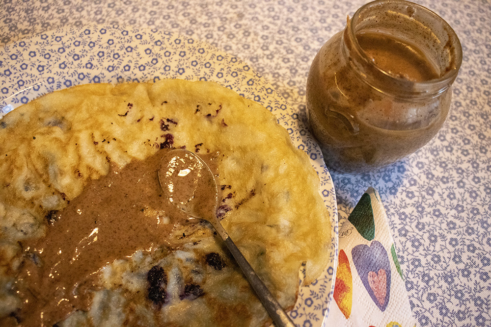 Втората рецепта беше резултат от MasterClass на Алис Уотърс “The Art of Home Cooking”. Там тя споменава френски (тънки) палачинки от смляни овесени ядки. Това е моята версия.