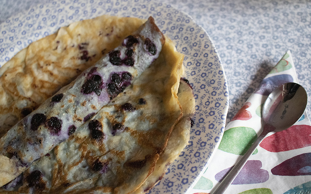 Калориите по-долу са пресметнати за палачинка, без боровинките.