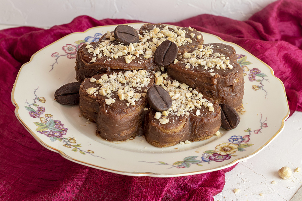 Обаче тази рецепта е различна. Тя е (много) свободна веган интерпретация на португалската Bolo de Bolacha, което в превод означава точно Торта от бисквити. Къде са разликите между нашата и португалската? Основно в крема, който е суров и се прави от масло, жълтъци и захар. И освен това бисквитите се топят в кафе. Лично аз съм заклет почитател на чая – у нас по всяко време може да се намерят поне 10 различни вида, обикновено насипни, но и някои в пакетчета. Сещам се за кафе изключително рядко, обикновено когато пътувам и обикновено пия капучино с мноооооого канела. Обаче винаги съм харесвала десертите с кафе, като например тирамису. Затова и тази торта ми допадна толкова много.