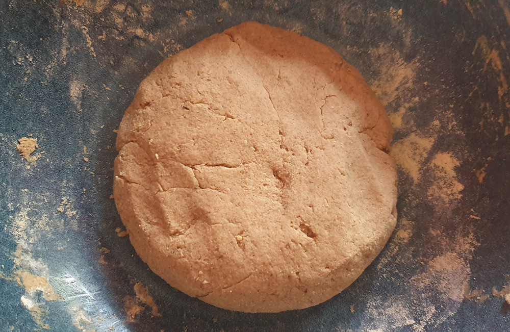 Цветът е тъмен – не съм се и опитвала да я направя светла, защото това щеше да ме прати в посока оризово брашно/картофено нишесте, а, както казах вече, не исках да отивам там.