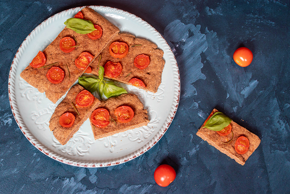 Отдавна гледам рецепти за фокача. Идеална е за компания на салата или супа. Обаче не исках да е с нишесте от царевица или картофи или с оризово брашно – това изключи всички готови безглутенови смеси. И със сигурност не исках да е с мая.