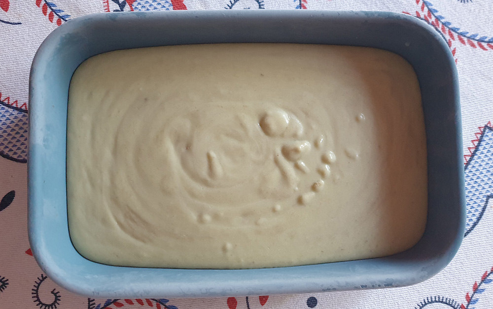 Сладоледът е много хомогенен и поради това не се наблюдава утаяването, което може да видите в други случаи. Това се дължи на пълномасленото кокосово мляко и на тази половин лъжица нишесте, която добавихме. По принцип методът без машина изисква вадене от фризера и старателно разбъркване на равни интервали (15 или 30 минути), точно за да се избегне утаяване. Разбърках го всичко на всичко един път, около половин час след слагането във фризера и след това го оставих да стяга. Проверявах го за готовност на всеки половин час. Три часа и половина по-късно сладоледът беше готов.