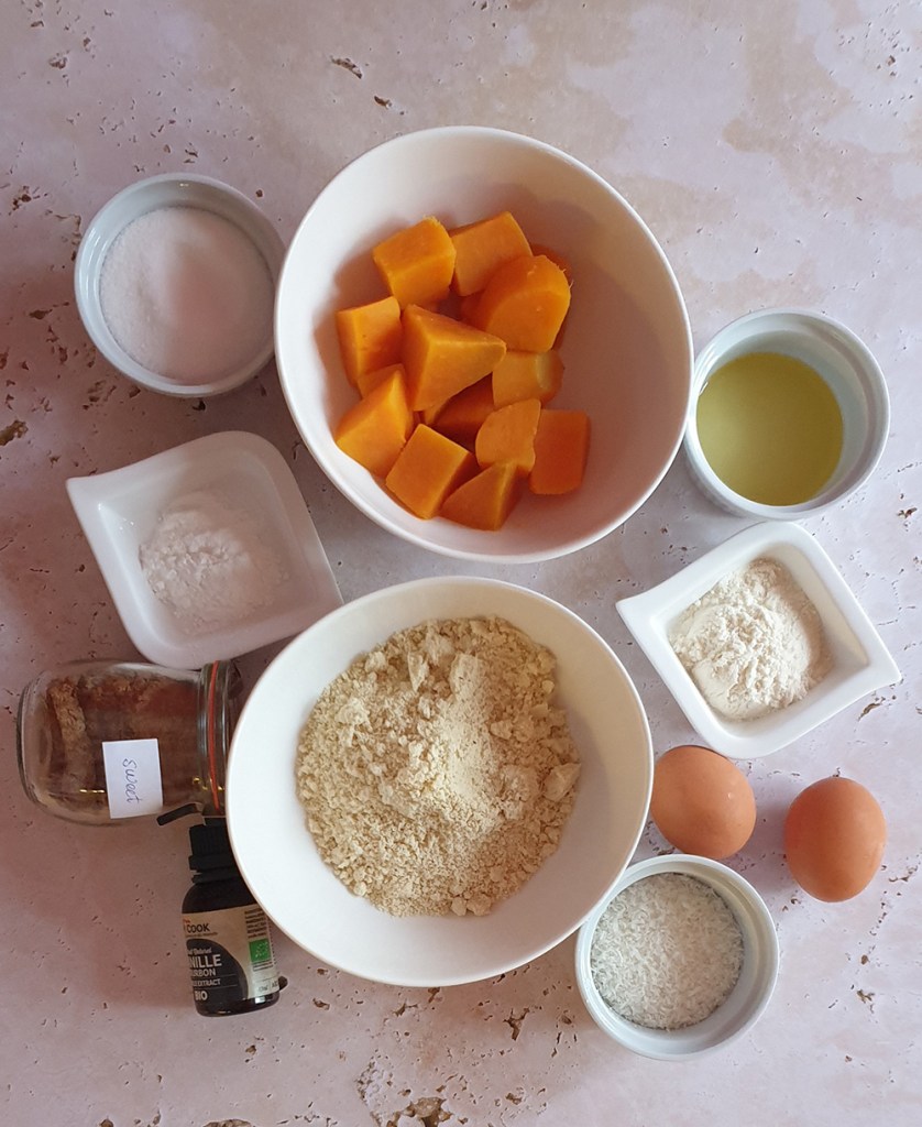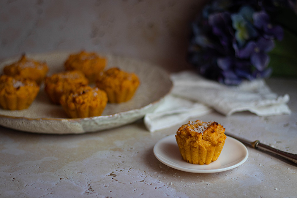 Ще ви призная, че това е втори опит да направя тези мъфини. Първата версия произведе много вкусен, но крайно несполучлив откъм форма резултат, който не можеше да бъде изваден от купичките и трябваше да се яде с лъжичка. Е, не ги изхвърлихме, но беше ясно, че трябва да променя нещо. При втория опит към бадемовото брашно в оригиналната рецепта добавих кокосово. То е много хигроскопично и прави тестото по-гъсто. Новите мъфини освен вкусни са и добре оформени и много лесно излизат от формите.