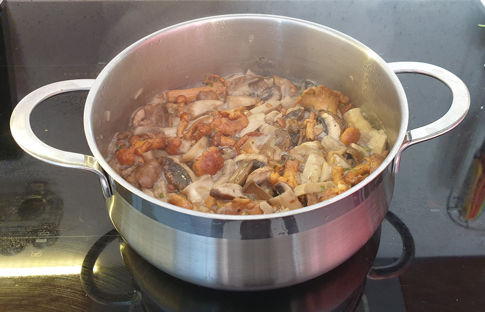 За гъбеното рагу може да вземете и само печурки – пак ще се получи. Но ако смесите с някакви диви гъби (пачи крак, кладница, манатарка), вкусът е много по-богат. Може да ползвате и сушени манатарки. В такъв случай намалете грамажа поне на половина (дори на четвъртина) и накиснете в гореща вода поне половин час.