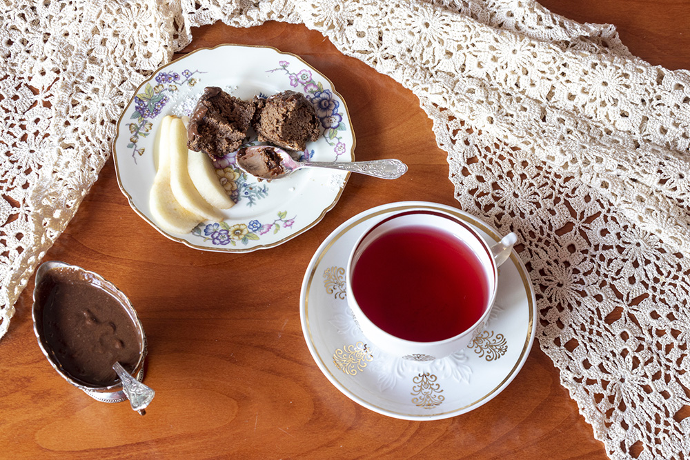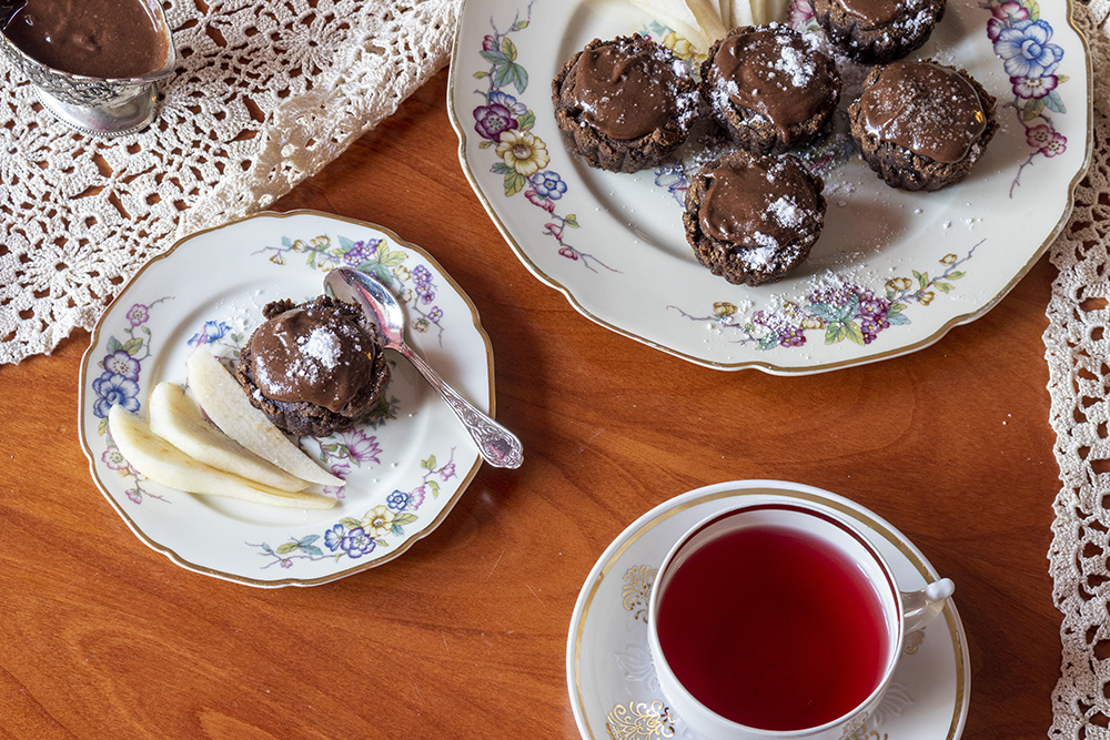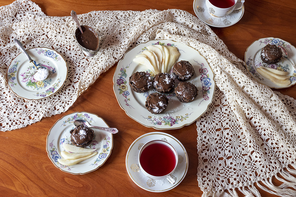 Сервирах ги с нарязана на филийки круша – много добра комбинация – и чай Berryblend на Tea Vibes от All Around the Cup.