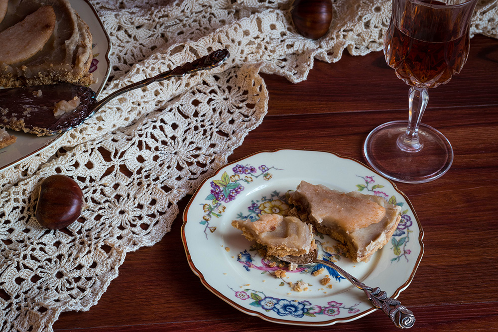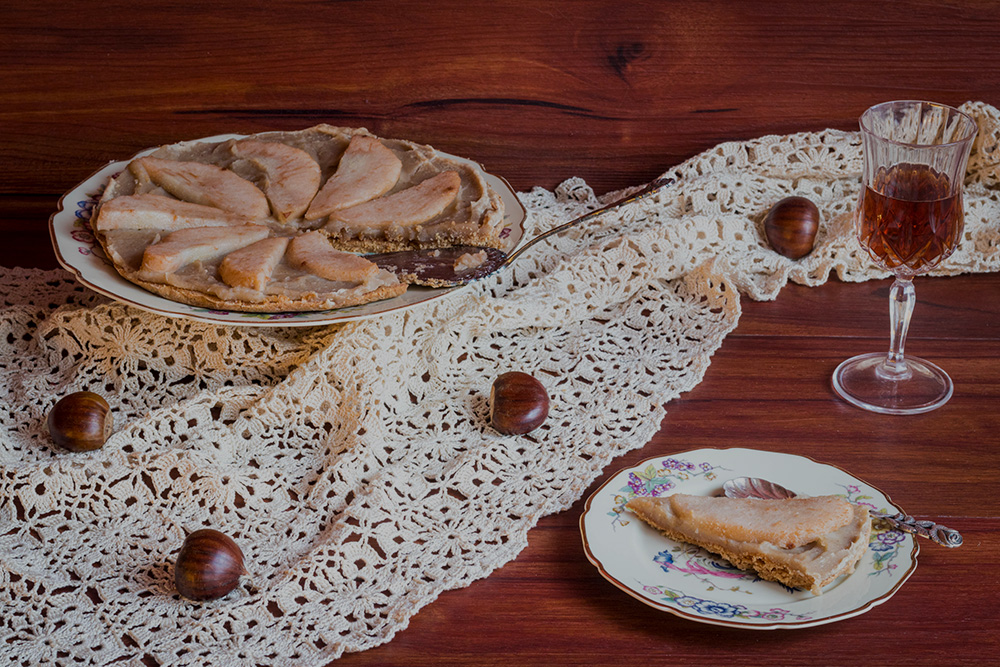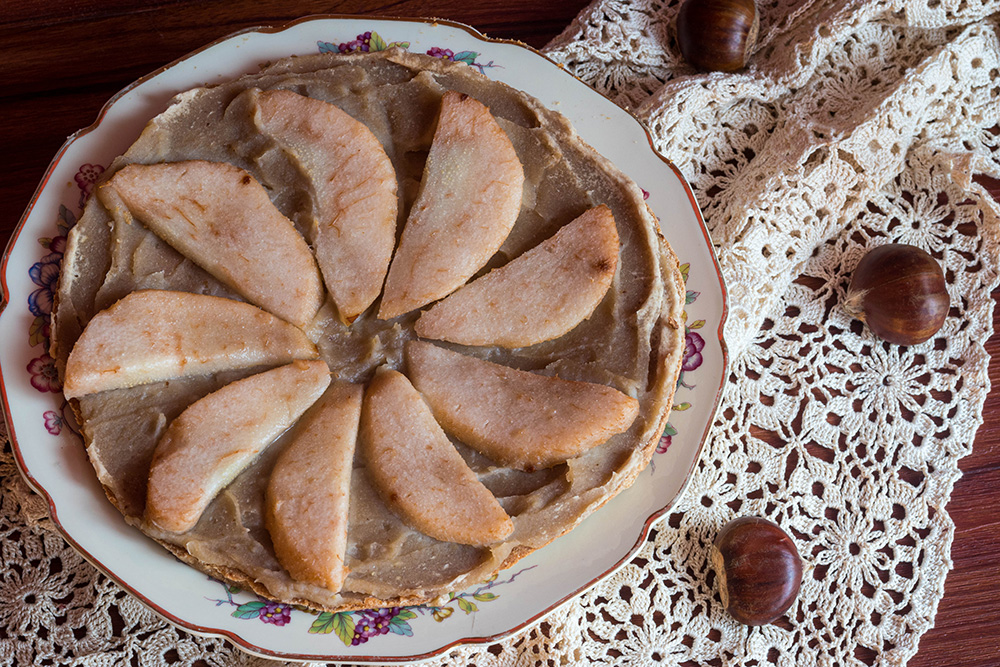 Като изключим беленето на кестените (което винаги е много тегаво), рецептата е лесна за изпълнение. Тартът е много вкусен – основата е леко хрупкава а „пълнежът“ – изключително ароматен. Като цяло не е фотогеничен десерт – прилича на пица с круши – но пък вкусът компенсира всички визуални „кусури“.