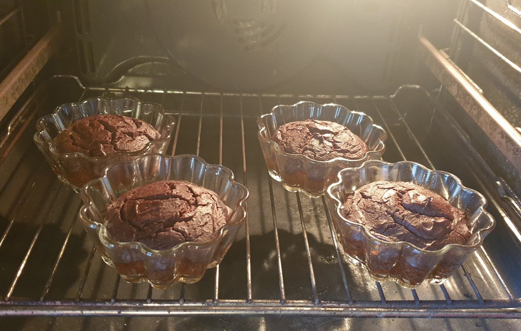 Преди години чух един израз – да зашиеш балтон на копчето. Тази рецепта се получи горе долу така. Първо видях тези прекрасни огнеупорни стъклени форми за кексчета и след това започнах да мисля какво да направя в тях.