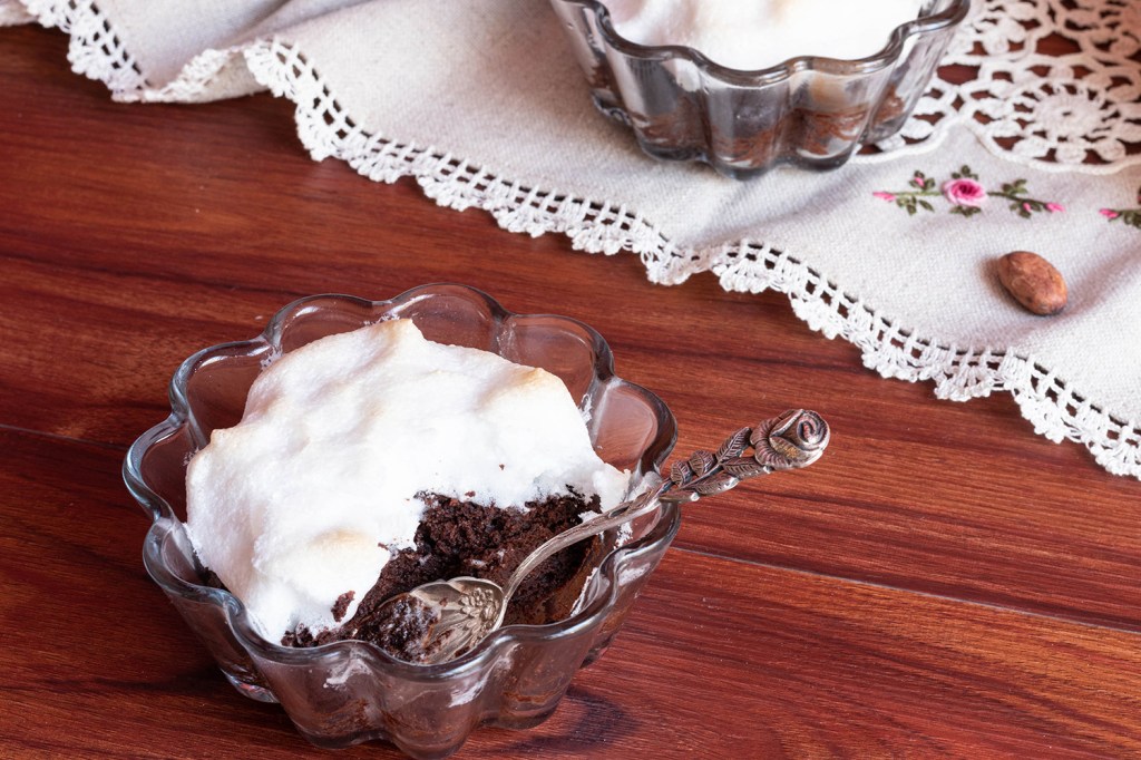 Извадете кексчетата от фурната и с лъжица разпределете глазурата по повърхността им, като оставите около половин см по края. Глазурата ще се разлее малко и ще покрие почти цялата площ, но така няма да залепне за формите. Ако искате може да оформите връхчета с помощта на лъжицата. Може също и да ползвате пош за да екструдирате глазурата под формата на спирала или като целувки. Върнете във фурната и печете още 15 – 20 минути (докато връхчетата покафевеят лекичко).