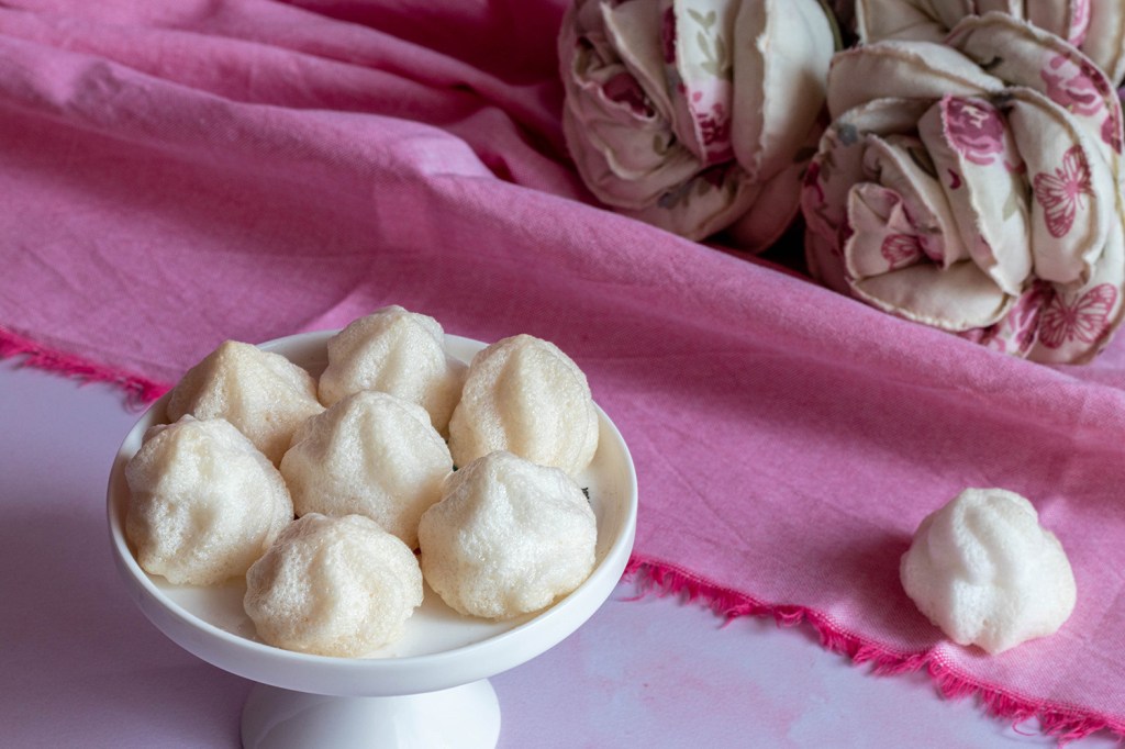 Целувките може да се екструдират с пош или да се оформят с лъжица. Размерът зависи изцяло от вас. Пекат се 40 – 45 минути на 120 градуса, след което се оставят за 1 час във фурната, преди да я отворите. Добре е след отваряне да изчакате още около половин час преди да ги прехвърлите в чиния за сервиране.