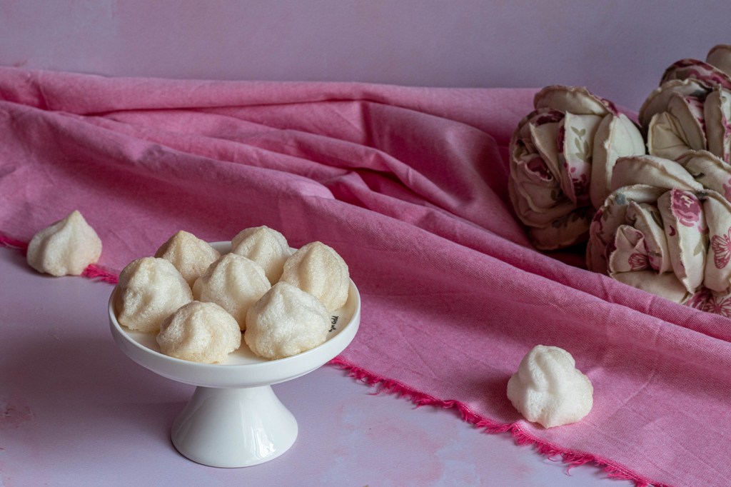 Бях изключително приятно изненадана от начина по-който се получи целувчената смес. За шоколадовия мус имах неблагоразумието да ползвам ръчен миксер и не сложих никакви стабилизиращи добавки. Второто в неговия случай беше верния подход, защото целта беше лек и ефирен вкус. Но в този случай целувчената смес се пече и се очаква тя да запази обема и формата си както по време на термообработката, така и след това. Затова добавяме лимонов сок и гума ксантан.