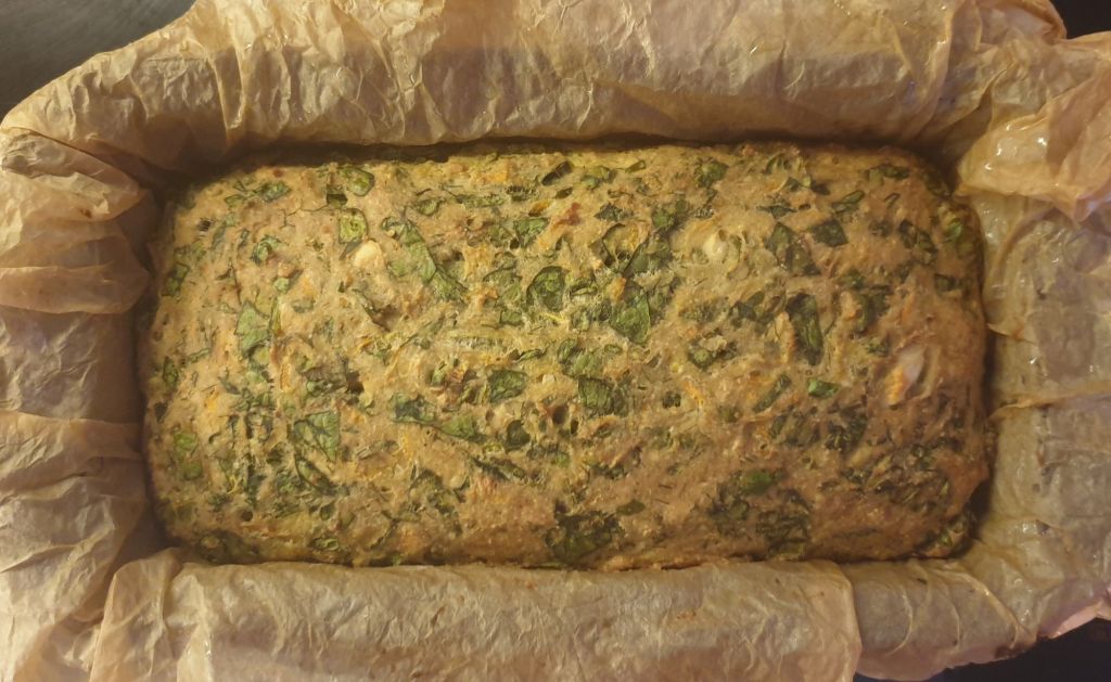Тази рецепта се случи съвсем спонтанно. Имах спанак, останал от топлата салата с нахут, червено цвекло и карфиол и точно бях купила тиквички за безглутенова нисковъглехидратна пица (за нея – друг път). Нямах планове за спанака и трябваше да се спра на нещо, за да не се наложи да го изхвърля. Сетих се за зеленчуковите кюфтета, но те са по-скоро за основно ястие, не за закуска. Затова реших да опитам нещо друго. Нещо като хляб, но със зеленчуци. Исках да е без яйца и за тази цел взех назаем някои детайли от веган безглутеновия хляб. Добавих и козе сирене, което обогатява вкуса и завършва рецептата.