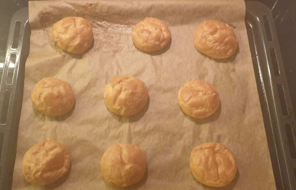 Печете 20 минути. Около 10тата минута еклерите ще се надигнат и до 20тата минута ще са придобили приятен златисто-кафяв цвят.