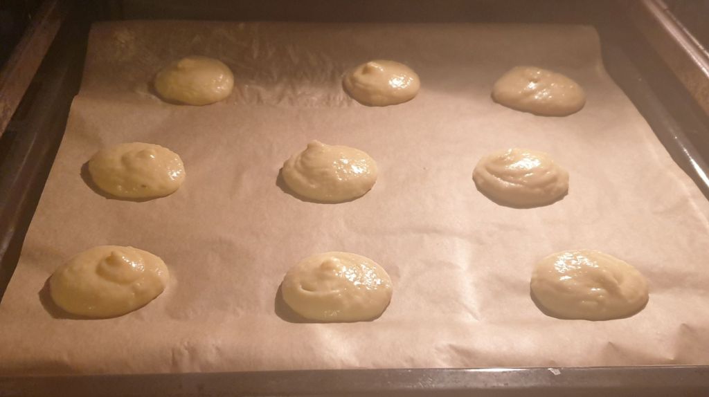 Оформете 10 горе-долу еднакви еклера. Моите са 9, защото не прецених добре разстоянията.