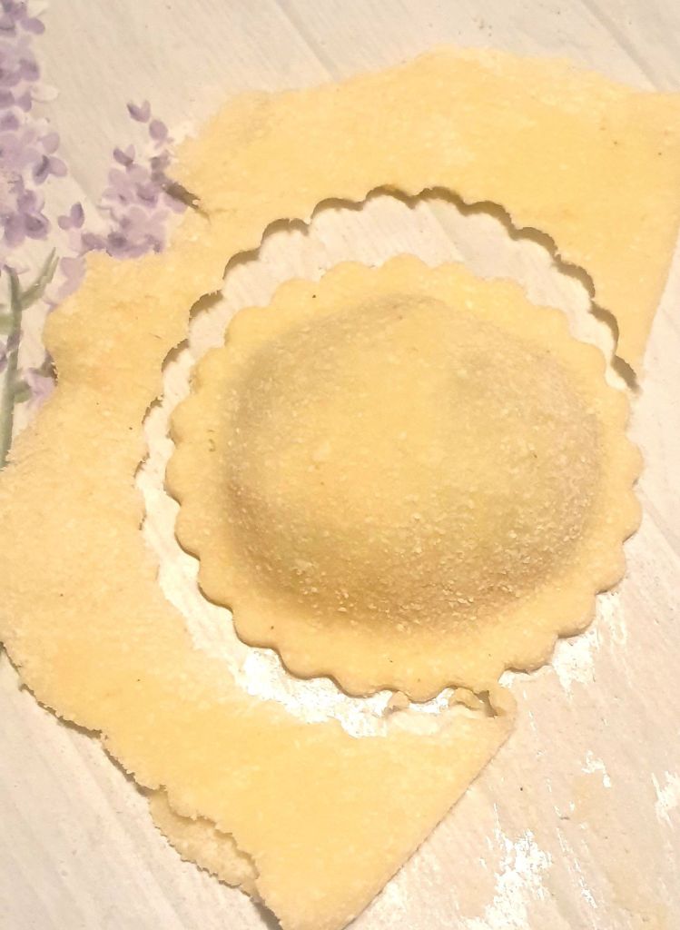 По същия начин направете и останалите, като събирате остатъците от тестото и ги добавяте към топката с леко измесване. В този момент можете да замразите равиолите за по-късно или да ги сготвите. Ако ги замразявате, извадете около 1/2 час преди готвене, за да се отпуснат.