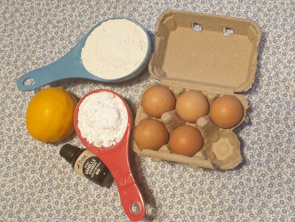 След като бишкотите бяха изпечени и одобрени, трябваше да реша как ще направя крема. Традиционната технология (според това, което прочетох) е със сурови жълтъци и белтъци. Понеже, както съм споделяла и преди, за мен това не е приемливо, се спрях на вариант със сабайон, при който белтъците отпадат (и остават за други проекти), а жълтъците се разбиват на водна пара с подсладителя.