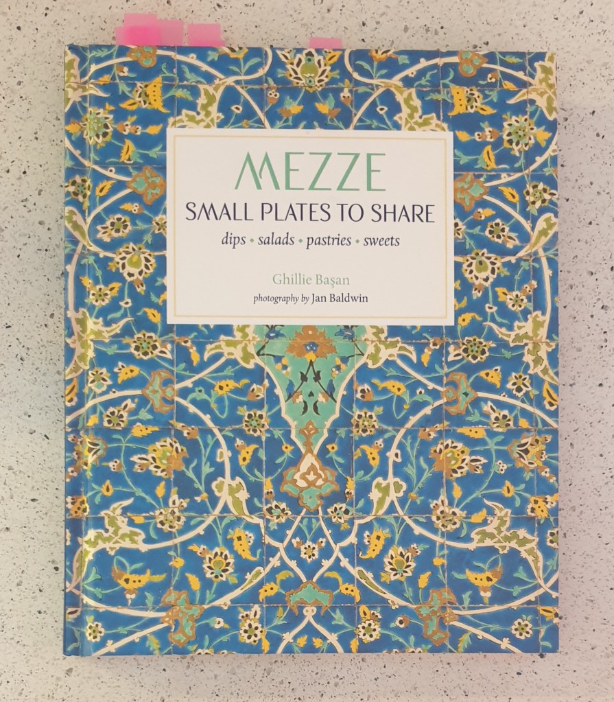 Има нещо много интимно в споделянето на няколко „мезета“ вместо всеки да има отделна порция. Освен това дава възможност да се опитат повече различни неща. Прегледах книгата и набелязах няколко потенциални рецепти. Исках да има както класически мезета, така и характерните за тази кухня „дипове“. Хумусът отпадна (има го в книгата), понеже съм правила всякакви (включително сладки за десерт) и държах да избера нови неща. След обмисляне на възможностите и проверка на възможността за набавяне на продукти, се спрях на следните (в този ред):