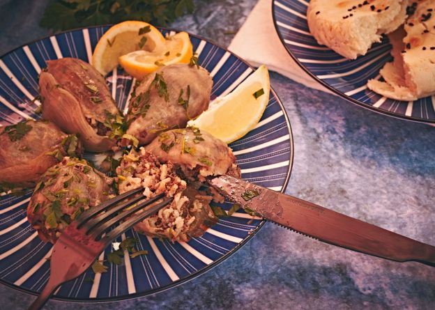 Първата рецепта от това пиршество, която публикувам, е за пълнения лук, защото той събра най-много точки от допитването в Инстаграм. Бързам да уточня, че няма нищо сложно в него, ако се спазят инструкциите за разделяне на слоевете от главите лук. Пълнежът може да бъде какъвто ви харесва – с месо или без, точно както е при пълнените чушки и сармите. Аз направих почти точно рецептата от книгата, като само замених агнешкото с телешко.