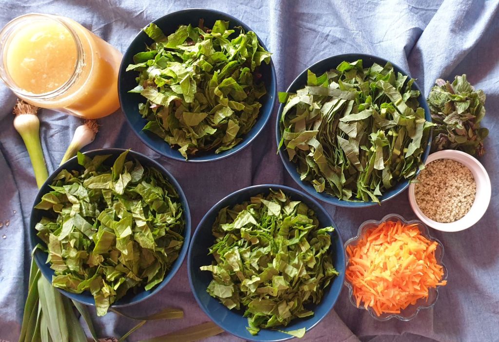 Идеята за супа не блести с гениалност, но понякога простите неща са най-хубави. Освен гореспоменатите зеленолистни, добавих пресен чесън, домашен бульон по тази рецепта, конопено семе (вместо стандартния ориз), морков за цвят и прясна мента за аромат.