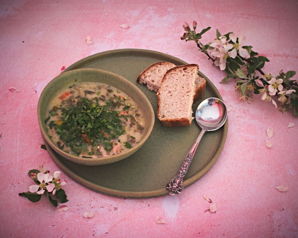 Това обаче не означава, че не си взех т. нар. агнешки комплект от Чифлик Ливади. Взех, разбира се, но за дроб чорба. Не знам за вас, но аз много я харесвам. Както класическата, с ориз, така и моята интерпретация с лапад, пресни лук и чесън, конопено семе и букет пресни подправки. Този прочит видя бял свят поради желанието ми да направя супата по-пролетна и да вкарам в нея повече типични за сезона продукти. Освен лапад, може да се включат спанак, манголд или коприва. Конопеното семе е моят реверанс към нисковъглехидратното хранене. Ако ви се вижда странно и нямате желание да опитате (макар че горещо го препоръчвам), може да замените с ориз.