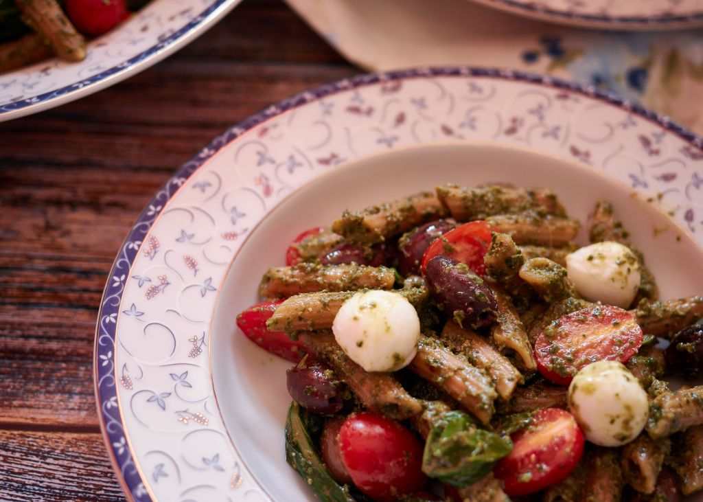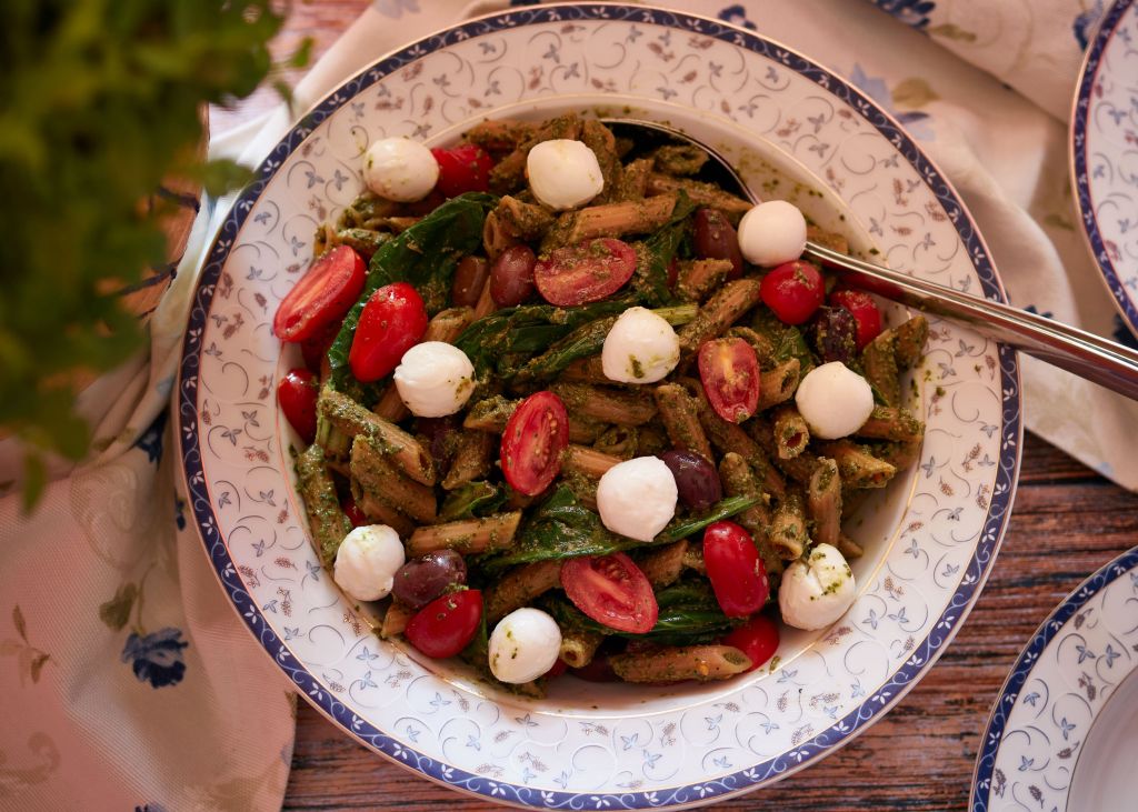 Ето още една салата, която почти не изисква ползване на нагряващи уреди и следователно е идеална за горещото време. Салатата с паста е прекрасен заместител на основно ястие. Може да се яде студена, така че, ако ви остане, просто приберете в хладилника за следващия ден.