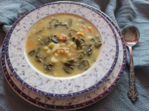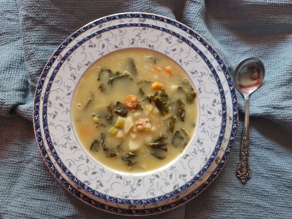 Това ще е седмицата на супите, явно. След мексиканската супа с цвят от тиквички, сега най-сетне споделям и тази рецепта, базирана на класическа португалска супа. Много свежа и сезонна. Съставът (извън лук, моркови и картофи) подлежи на интерпретация, според наличностите.