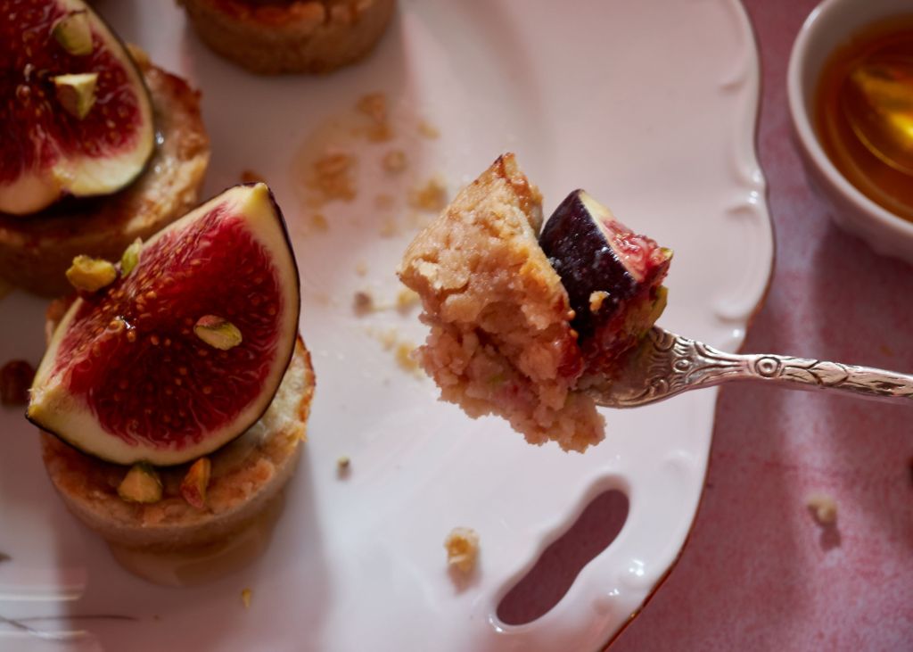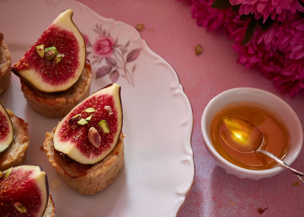 Пълнежът на тарталетите не е подсладен, но това не бива да ви притесява. Кленовият сироп в основата и медът за гарниране в комбинация със сладостта на смокинята са напълно достатъчни да направят този десерт невероятен.
