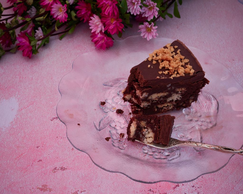 Идеята за тази веган и (сравнително) ниско въглехидратна бисквитена торта е от Project vegan baking. Там ще прочете, че това е веган версия на любимата торта на кралица Елизабет. Определено има защо.