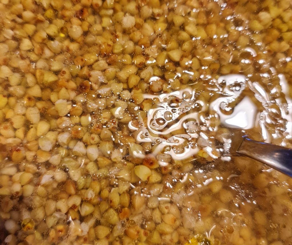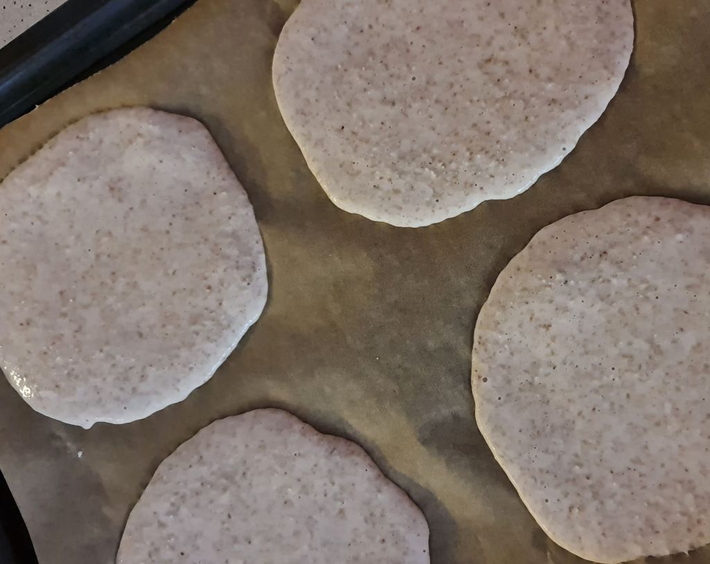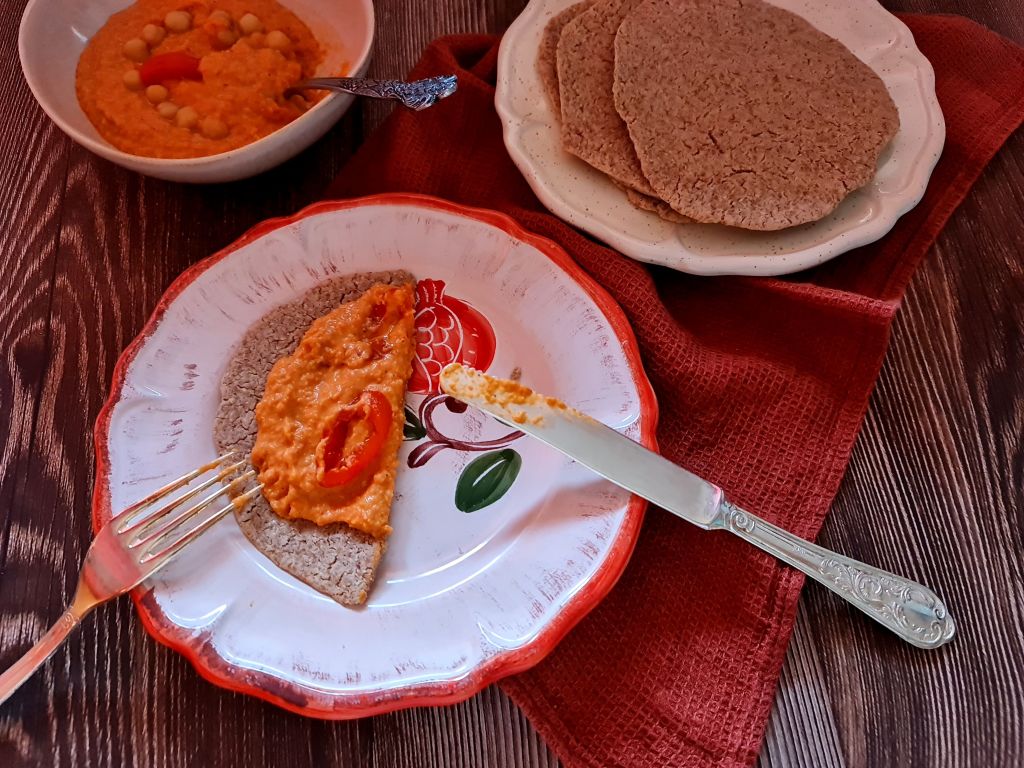 За да запазя регионалната асоциация, потърсих идеи за плосък хляб, без глутен и мая. Намерих една интересна идея с елда и реших да я пробвам. В нея се използват зърна, не брашно. Накисват се с вода и след престой се смилат.