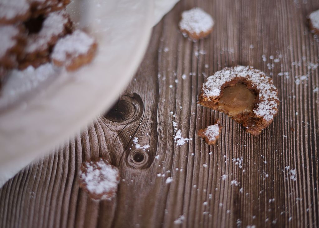Оригиналните линцер са сандвич бисквити със смес от бадемово и пшеничено брашно, слепени с малиново сладко. Както подсказва заглавието – тези не са оригинални. Дори не бяха планирани така. Просто исках да направя бисквити с ябълково брашно, слепени с ябълковото масло, което направих преди седмица.