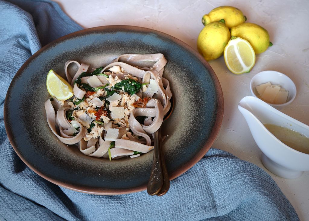През лятото правих паста салата с филе от паламуд на Черноморски улов и понеже продуктът много ми хареса, взех отново. Тъй като сега вече не е лято и стоенето до готварската печка не ме изпълва с ужас, в тази нова рецепта има малко повече готвене. Наистина малко.
