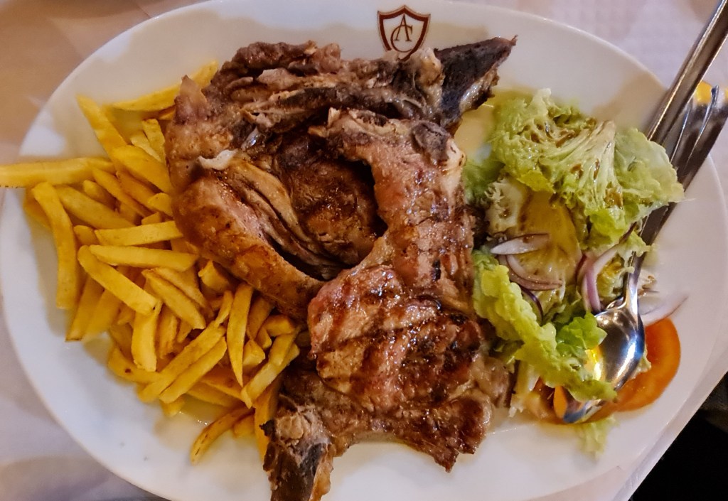 След 3-часовата обиколка имахме нужда от храна, а аз лично и от вино. Бърза проверка в интернет предложи ресторант Adega do Convento (Избата на манастира), който е на 5 минути пеша. Предвид зимния дъжд, който се изливаше цял ден, това беше важно. Но мястото определено оправда всички очаквания. Храната беше вкусна, порциите – огромни (не преувеличавам) и обслужването – на ниво. Тук ядох първото bacalhau*, което наистина ми хареса – със сметана на фурна.