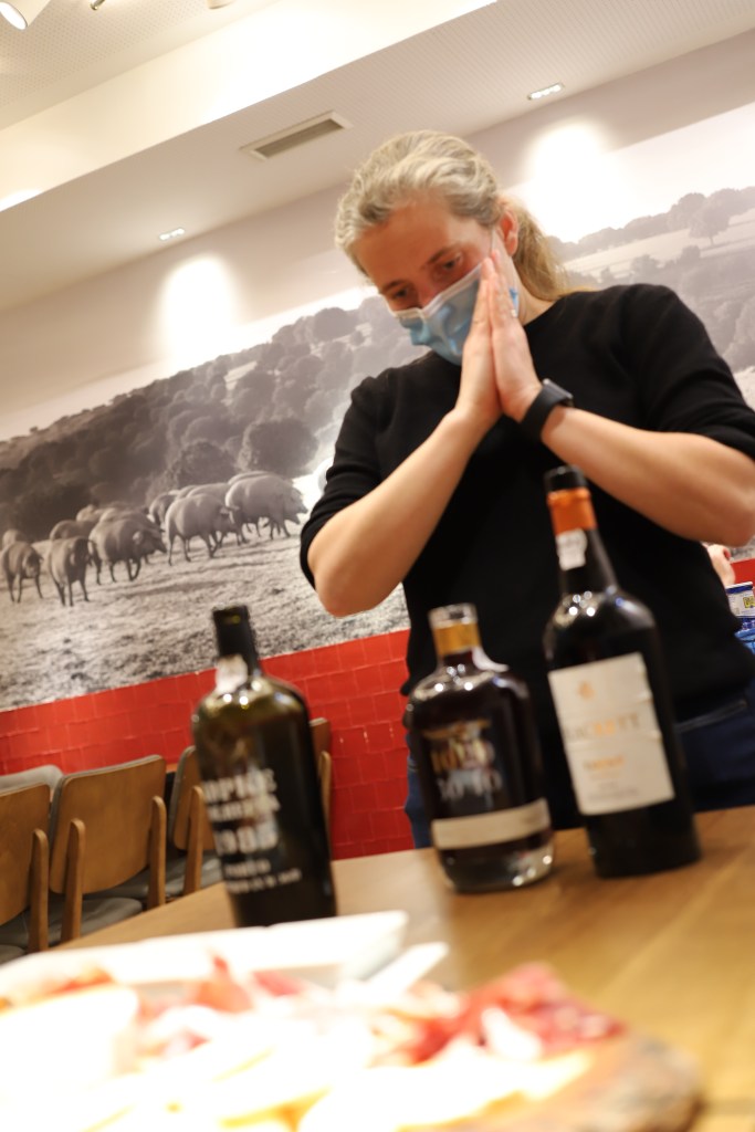 Алекс е една от съоснователите на Lisbon Winery и много ни впечатли с познания и подход. Разказа ни за това какво е портвайн, как се отличава от другите вина и защо не може да се произведе другаде. Съвсем накратко – става дума за комбинация от технология на винопроизводството, метод на отглеждане и бране на гроздето, географско положение, почва и микроклимат. И ако първите две могат да бъдат възпроизведени, остналите не могат.