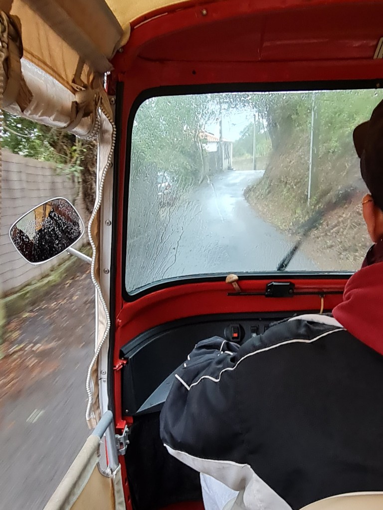 Докато изчислявахме размера на бедствието, по стръмния тесен път пред Monserrate се зададе тук-тук, който беше свободен. Благодарихме на съдбата за благоволението и помолихме шофьора да ни закара до гарата възможно най-бързо, без жертви по пътя. Вярвайте ми, пътуването с максимално възможната за това превозно средство скорост по този път и в дъжд е сериозно приключение. За нас то завърши с успех – 15 минути по-късно вече чакахме влака.