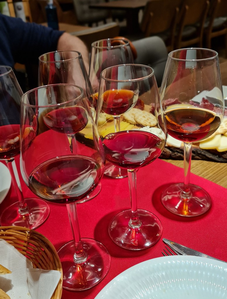 Слес това опитахме 5 различни вина – 1 бяло, 3 tawny и 1 рубинено. Всички бяха различни, всяко със своите специфични вкусови особености. Към вината имаше плато избрани сирена и меса и хляб.