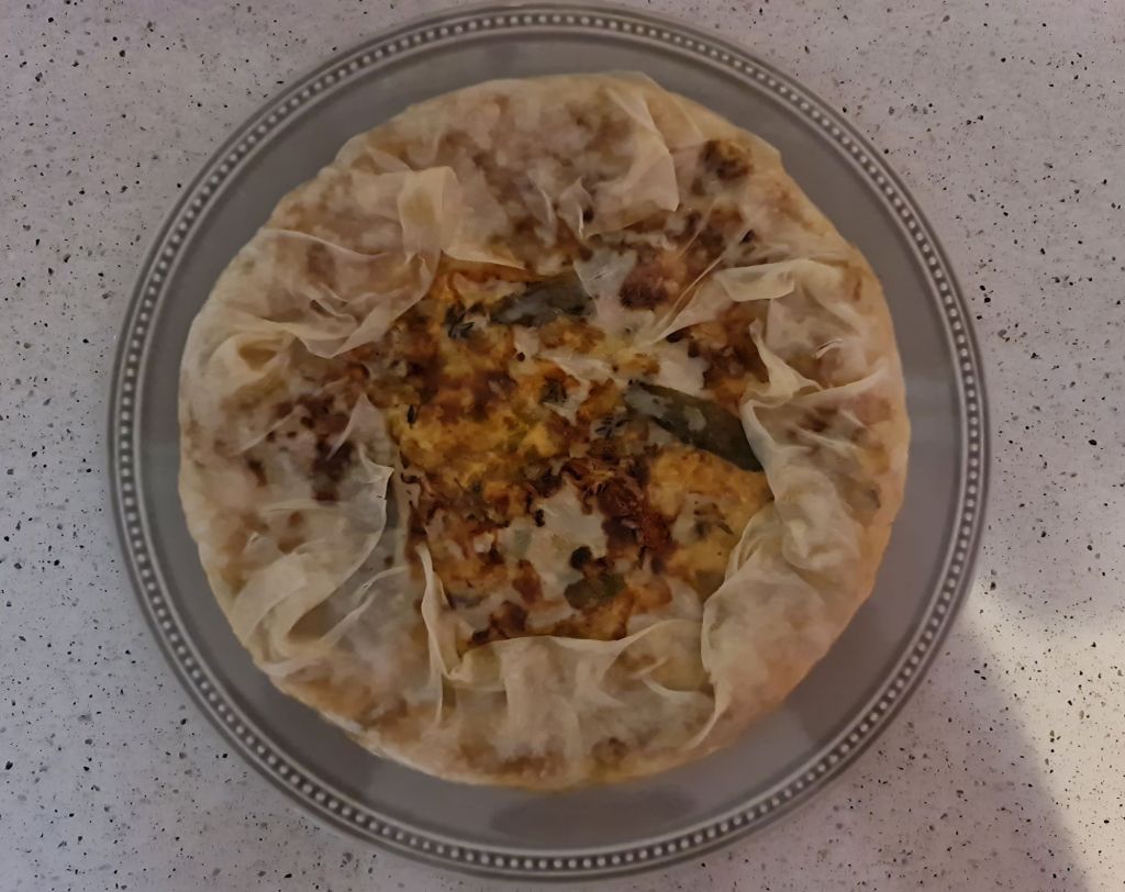 Това беше един от най-бързите обяди, които съм приготвяла. И също толкова вкусен. Използвах оризовите кори за пролетни ролца, за да я направя безглутенова. В този вариант, има само едно яйце, за разлика от лятната баница със зеленолистни, която споделих миналата година. Всъщност и без него можех да мина, но вече бях го извадила и…