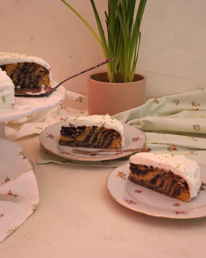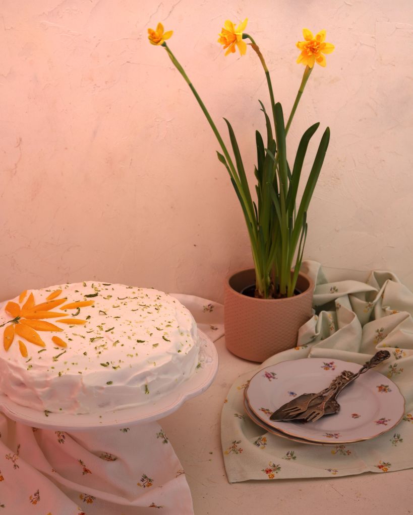 Глазурата е от бита сметана, леко подсладена и овкусена с лайм. Трите аромата се съчетават прекрасно за един необичаен и много свеж вкус, в който ще се влюбите.