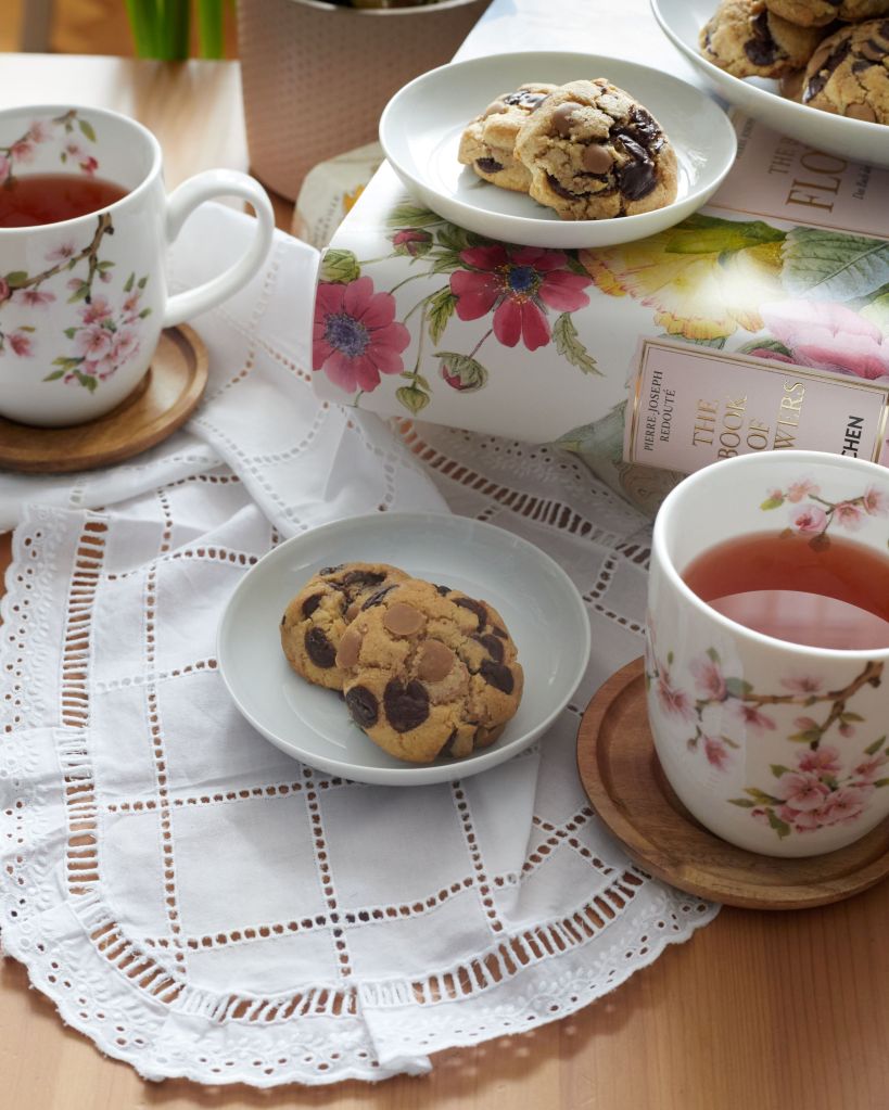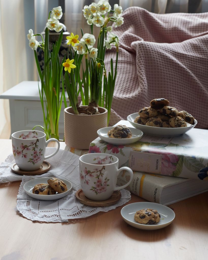 С лъжица отмерете количеството за една сладка и оформете с пръсти. Шоколадовите капки ще стърчат, това не бива да ви притеснява. Излизат 20 – 22 сладки. Разположете ги на поне 2 см една от друга (аз успях да ги събера в тавата на фурната) и печете 11 – 12 минути. Оставете да изстинат напълно преди да преместите, понеже, докато са топли, са меки.