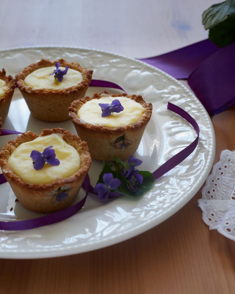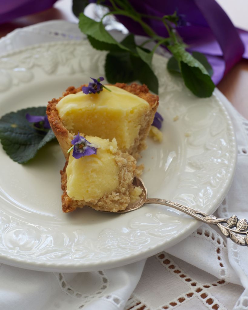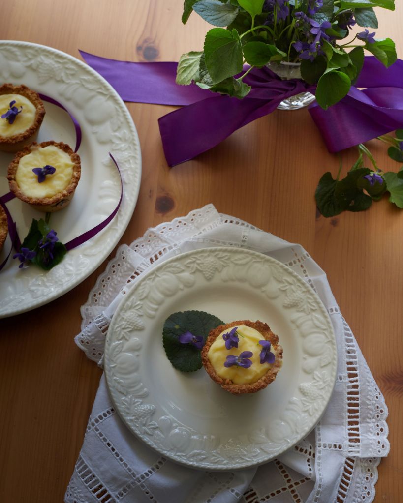 Лично за мен предимството на лимона е в неговата свежест. Всяка хапка лимонов десерт ми създава неповторимо настроение. А за тази пролетна феерия специално си набрах теменужки за гарниране. Дори пробвах да ги добавя като декорация на основата, но след изпичане са почти незабележими. Така че спокойно можете да пропуснете това усложнение, защото и без него тарталетите са божествени.