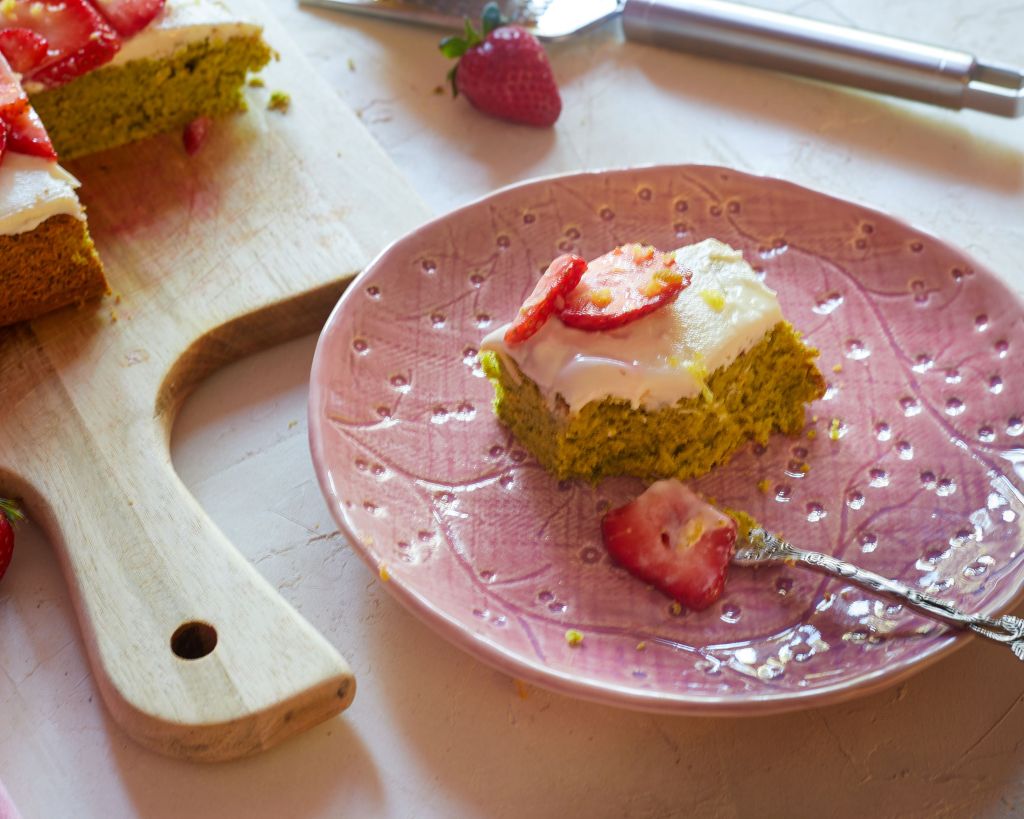 Зеленото е малко необичаен цвят за десерт, но този далеч не е единствения такъв – сладкишите със сериозно съдържание на шам фъстък също са зелени. Така че не позволявайте на това да ви спре. Кексът е уникално вкусен и нискокалоричен и заслужава място на вашата трапеза.