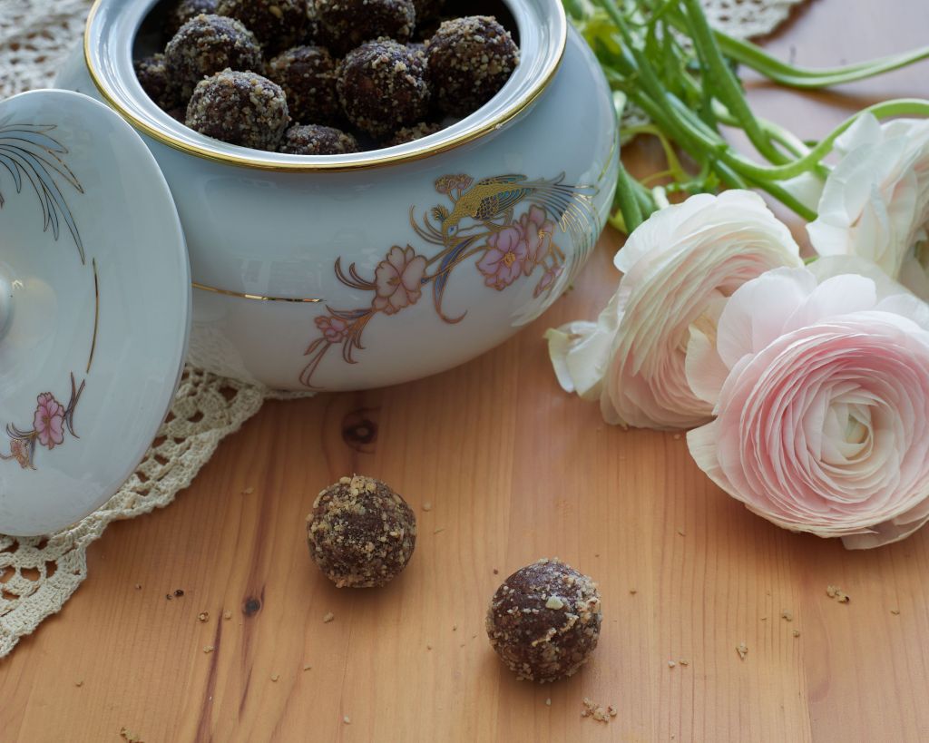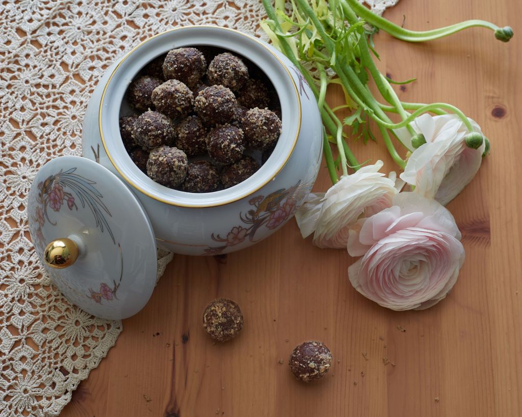 Една доза шоколадови трюфели никога не е излишна. Особено когато е от тези ароматни хапки блаженство с лешников тахан и петмез от рожкови. Вкусът е наситено шоколадов, благодарение на суровото какао. Бяха пълна импровизация за едно тържество и останах много доволна от резултата.