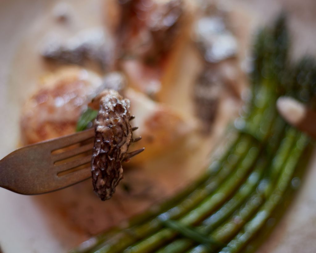 Миналата събота най-сетне попаднах на смръчкула на фермерския пазар. Нямах големи надежди, понеже излязох късно, но гъбките ме чакаха. Изкушавах се да ги направя само на тиган с масло, но в крайна сметка се спрях на вариант за основно ястие, в което те са черешката на тортата.