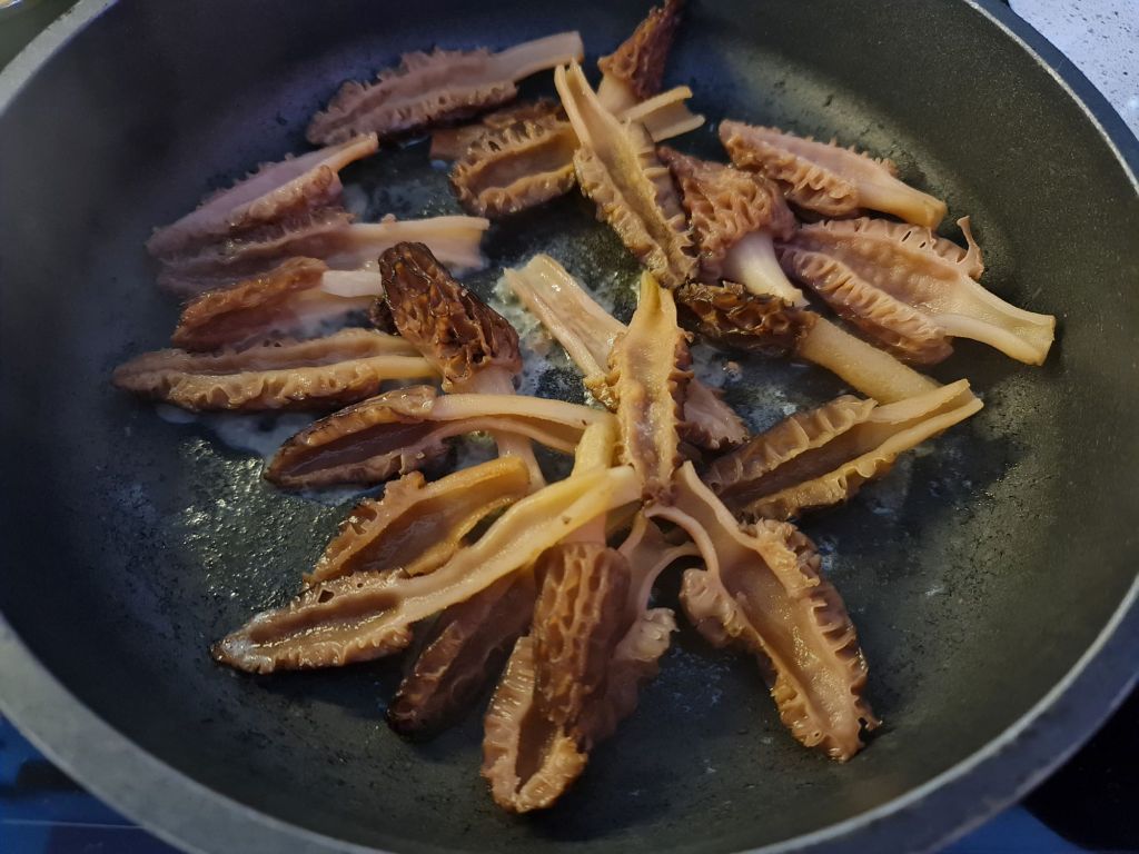 За пръв път готвя смръчкула и я намирам за много интересна гъба. Ако ми бяха превързали очите и ми бяха дали една в ръцете, със сигурност щях да кажа, че гумена играчка. Усещането е точно токова. Чистенето трябва да е внимателно, понеже в улейчетата и вътрешната кухина може да има следи от пръст или пясък. Добре е да се срежат гъбките по дължина. Ароматът наистина е уникален и готвенето в животинска мазнина (масло и сметана) прекрасно го „вади“ на показ. Освен черния и пушения пипери, единствената подправка е пресен естрагон, който е много деликатен и не се бори за надмощие с аромата на гъбите.