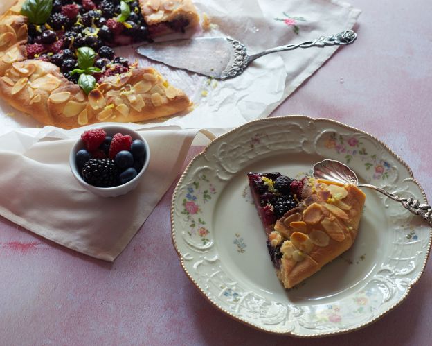 Този го направих с горски плодове – смес от малини, къпини и боровинки. Целият процес отне по-малко от час. Тестото за основата е маслено, с бадемово брашно и едно яйце. Вкусът се допълва от лимонова кора и пресен босилек, които добавят свежест и много подхождат на горските плодове.