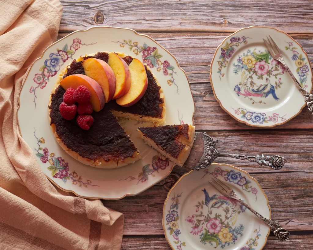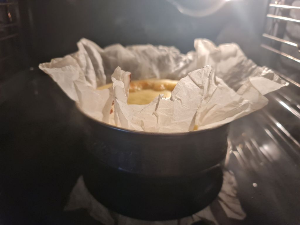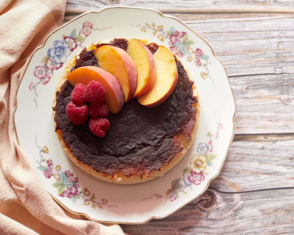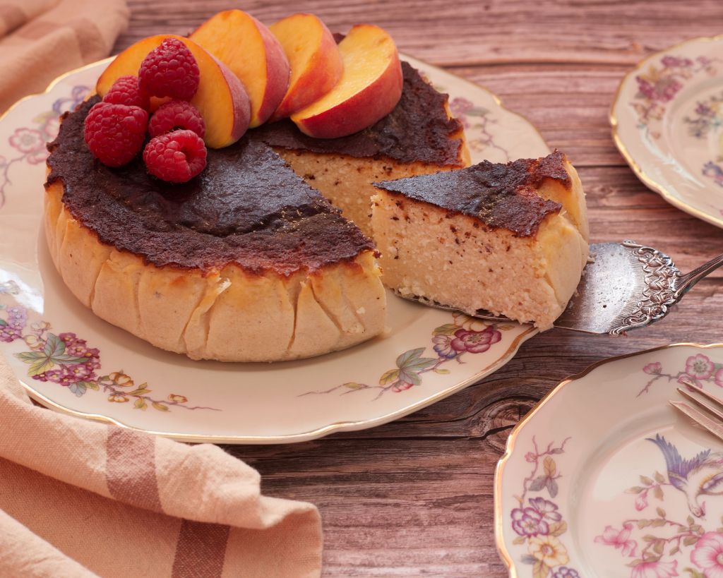 Спрях се на т.нар. „прегорял“. Предполагам името идва от тъмно кафявата коричка, която се образува по повърхността при печене. Води се още баски. За моята версия смесих рикота и извара от краве мляко, а синьото ми сирене е сладка горгонзола.