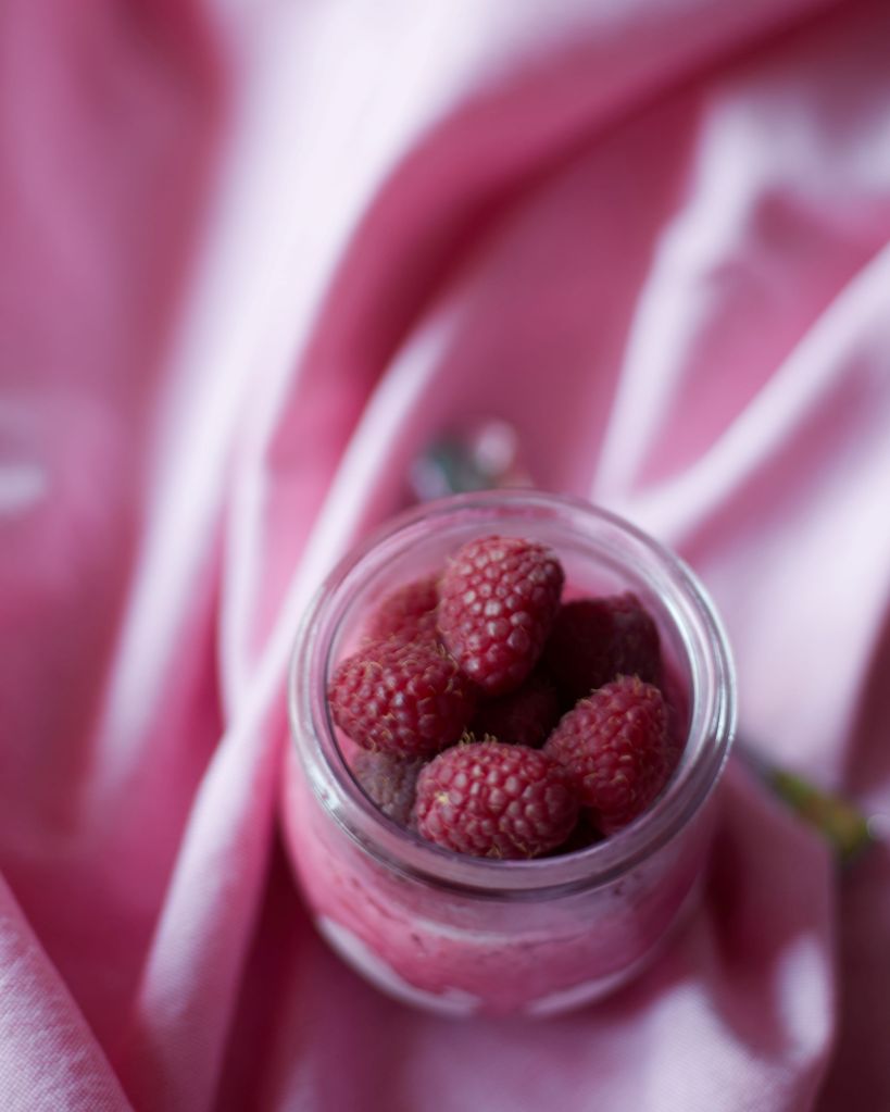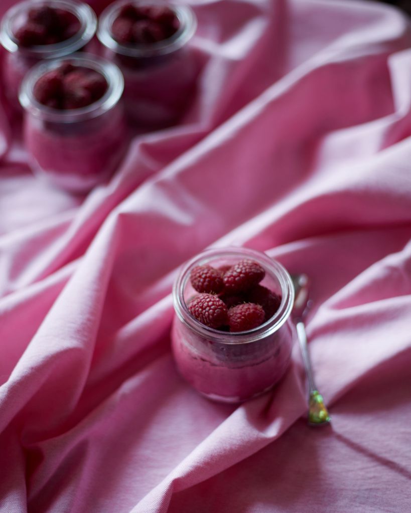 За гарниране, освен малини, може да ползвате прясна мента, пресен босилек, настъргана лимонова кора.