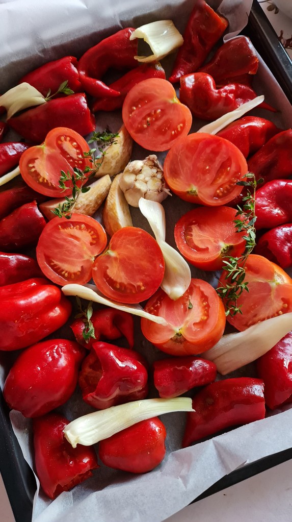 Вчера получих първите дребнички червени чушки от Софина и може би последните за сезона домати. Още преди да пристигнат знаех какво искам да направя с тях.