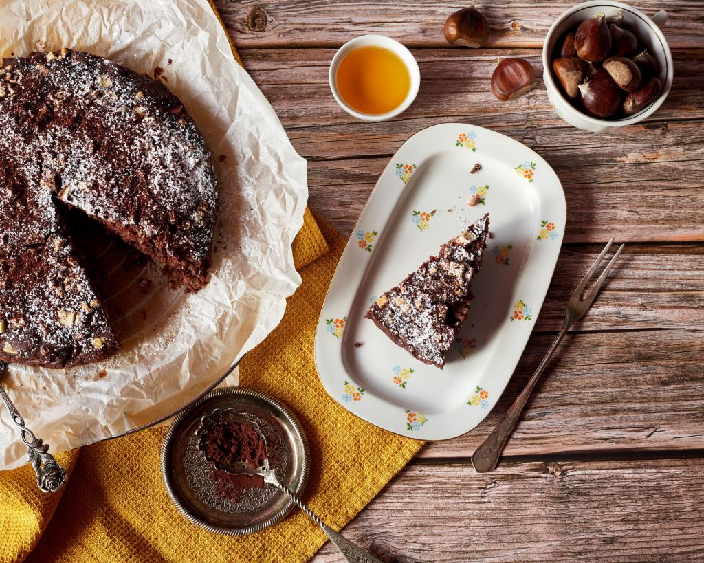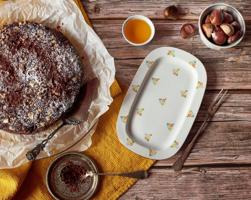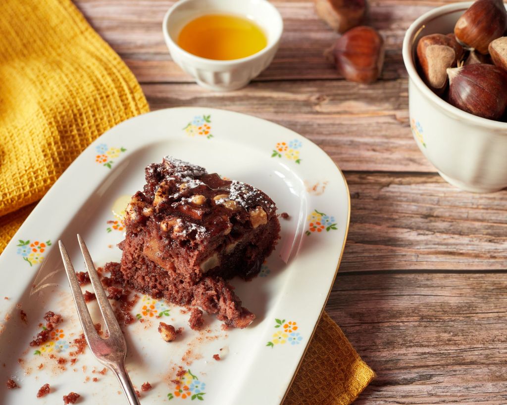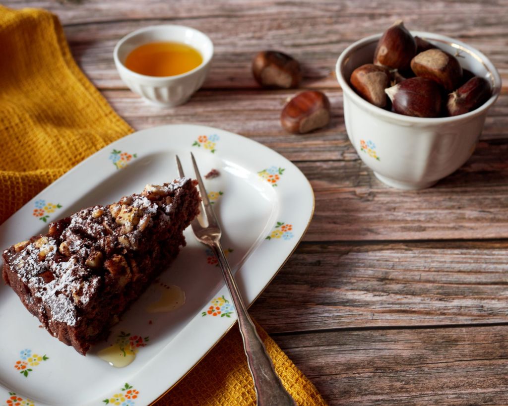 Есента е времето на кестените. Много ги обичам. Всяка година с нетърпение чакам да излязат. Докато търсех идеи, попаднах на този ароматен италиански сладкиш с кестеново брашно. В него е събрано цялото великолепие на сезона.